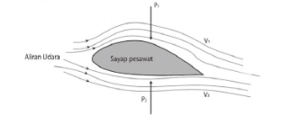 Kecepatan aliran udara di atas sayap lebih besar dari pada kecepatan aliran udara di bawah sayap