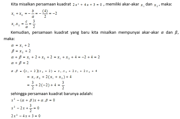 Persamaan kuadrat baru yang mempunyai akar-akar dua lebihnya dari akar-akar persamaan adalah…