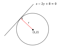Persamaan lingkaran yang berpusat di (1,2) dan menyinggung garis x - 2y + 8 = 0 adalah...