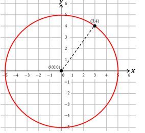 Persamaan lingkaran yang berpusat di titik O(0,0) dan titik (