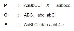 Persilangan antara individu dengan genotip aabbcc dengan AaBbCC. Pada individu AaBbCC gen A dan B selalu bersama-sama saat pembentukan gamet. Berdasarkan persilangan akan diperoleh gamet pada individu 1 dan jumlah keturunan hasil persilangan keduanya secara berurutan adalah….