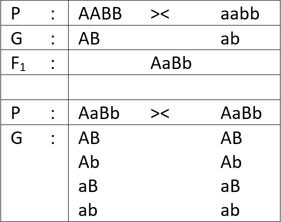 Persilangan antara tanaman bergenotipe AABB dengan aabb akan menghasilkan perbandingan fenotipe F2 ....