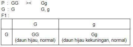 Persilangan tanaman jagung hijau homozigot dengan tanaman jagung hijau kekuningan heterozigot menghasilkan F1 bersifat normal heterozigot dengan persentase sebesar …