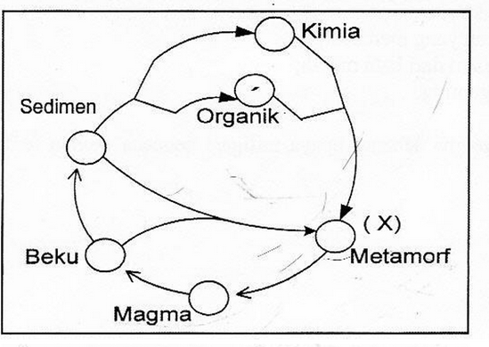 Perubahan batuan sedimen menjadi batuan dengan tanda X pada gambar disebabkan oleh faktor...
