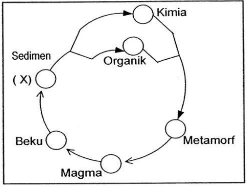 Perubahan batuan yang diberi tanda X pada gambar, terjadi karena....