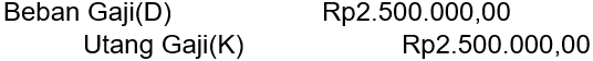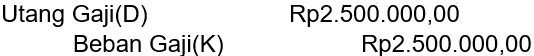 Perusahaan jasa membayar gaji karyawan sebesar Rp7.500.000,00. Pada akhir periode akuntansi tanggal 31 Desember 2019, perusahaan masih mempunyai beban gaji Rp2.500.000,00. Buatlah jurnal pembalik!