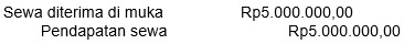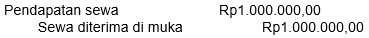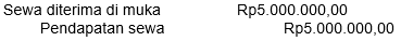 Perusahaan menerima pembayaran sewa di muka dari pelanggan sebesar Rp6.000.000,00 untuk 6 bulan terhitung sejak 2 Agustus 2017. Apabila perusahaan mengakuinya sebagai utang, jurnal penyesuaian akhir Desember 2017 yang benar adalah ....
