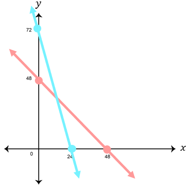 3 x + y = 72 x + y = 48 − 2 x = 24 x = 12