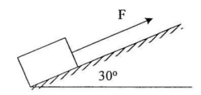 Sebuah balok kayu berada pada bidang miring kasar ditarik dengan gaya 200 N. Jika massa balok 18kg, dan percepatannya , maka gaya gesekan yang dialami balok terhadap bidang miring adalah ...