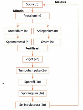 Tahap metagenesis Pteridophyta yang memiliki kromosom diploid (2n), yaitu....