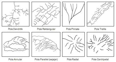 Pola aliran sungai sangat dipengaruhi oleh morfologi maupun struktur geologi dimana sungai tersebut mengalir. Pola aliran di daerah patahan atau rekahan adalah....