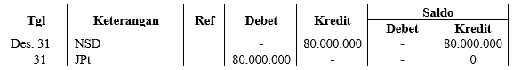 Posting atas jurnal penutup untuk akun penjualan sebesar Rp80.000.000,00 yang benar pada PD. “Dua (II)” adalah ...