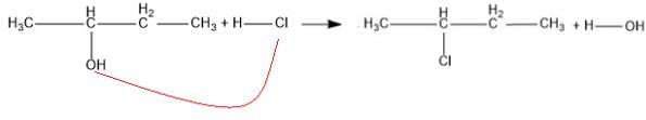 Produk dominan dari reaksi antara senyawa 2-butanol dengan asam klorida adalah ....