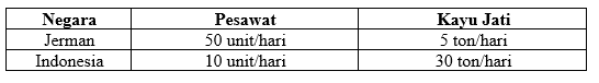 Untuk negara Jerman Dasar Tukar Dalam Negerinya (DTD) 1 unit pewasat akan mendapatkan 0,1 ton kayu jati, angka tersebut diperoleh dari perhitungan 5 ton kayu jati : 50 unit pesawat = 0,1 ton kayu jati, sehingga 1 unit pesawat = 0,1 ton kayu jati sedangkan di Indonesia 1 unit pesawat akan mendapatkan 0,33 ton kayu jati (cara perhitungannya sama dengan perhitungan sebelumnya).