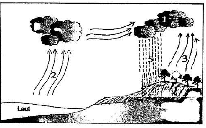 Proses evaporasi pada gambar siklus hidrologi adalah angka ...