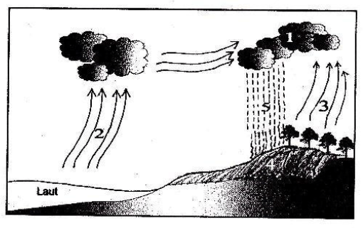 Proses evaporasi pada gambar siklus hidrologi adalah angka....