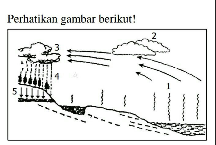 Proses presipitasi pada siklus air pada gambar tersebut ditunjukkan oleh nomor….