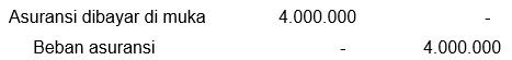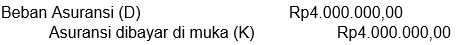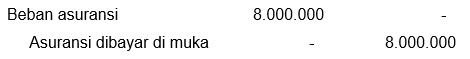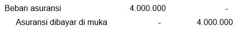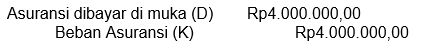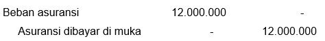 Asuransi satu bulan Asuransi satu bulan Beban asuransi belum dijalani Beban asuransi belum dijalani ====Rp12.000.000,00 : 12 bulanRp1.000.000,004 bulan (Januari−April)Rp4000.000,00
