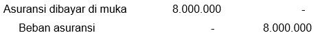Membayar asuransi pada awal Mei 2016 sebesar Rp12.000.000,00 untuk 1 tahun dan mengakuinya sebagai beban.