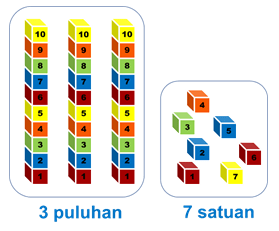 3 puluhan, 7 satuan