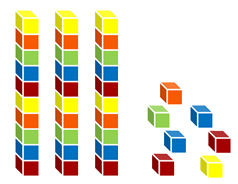 Puluhan dan satuan pada bilangan yang ditunjukan pada gambar kubus-kubus berwarna ini adalah....
