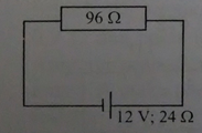 Rangkaian listrik arus searah sederhana terdiri atas sebuah baterai dan sebuah resistor. Jika baterai memiliki gaya gerak listrik (ggl) 12 V dan hambatan 24 𝛺 sedangkan resistor memiliki hambatan 96 𝛺 seperti ditunjukkan pada gambar, beda potensial antara ujung-ujung resistor sebesar ….