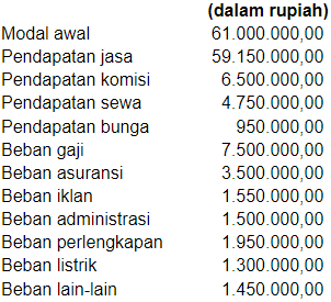 Raya Ekspress memiliki data keuangan yaitu Modal 1 Februari 2019 Rp61.000.000,00, pendapatan jasa Rp59.150.000,00. pendapatan komisi Rp6.500.000,00, pendapatan sewa Rp4.750.000,00, pendapatan bunga Rp950.000,00, beban gaji Rp7.500.000,00, beban asuransi Rp3.500.000, beban iklan Rp1.550.000,00, beban administrasi dan umum Rp1.500.000,00, beban perlengkapan Rp1.950.000,00, beban listrik Rp1.300.000,00, beban lain-lain Rp1.450.000,00, dan pengambilan prive Rp1.500.000,00. Buatlah laporan laba/rugi Raya Ekspress berdasarkan data keuangan tersebut!