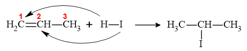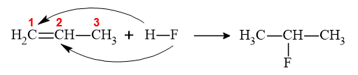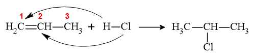 Reaksi hidrohalogenasi merupakan salah satu jenis dari reaksi adisi alkena. Di antara keempat reaksi berikut, reaksi yang merupakan reaksi hidrohalogenasi yang sesuai dengan aturan Markovnikov adalah ...