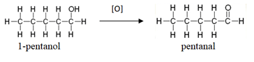 Reaksi oksidasi 1-pentanol akan menghasilkan pentanal.