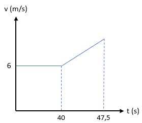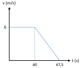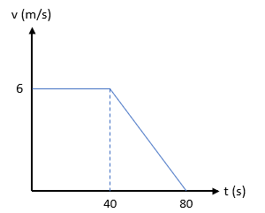 Ricky sedang mengendarai sepeda di jalanan lurus dengan kelajuan konstan 6 m/s sejauh 240 m. Kemudian Ricky mengerem sepedanya dengan perlambatan 0,8 m/s2 sampai sepeda berhenti. Grafik yang menggambarkan pergerakan sepeda Ricky adalah ….