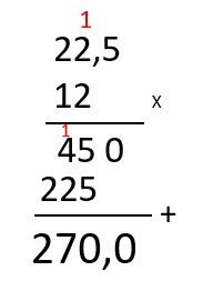 Rina memiliki 12 kantong karung gula. Masing-masing karung berisi 22,5 kg gula. Maka, berat gula seluruhnya adalah… kg.
