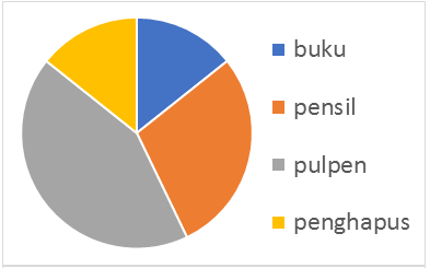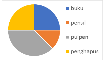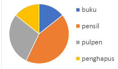 Rizka memiliki 1 buah buku tulis, 2 buah pensil, 3 buah pulpen, dan 1 buah penghapus. Diagram lingkaran yang sesuai adalah ….