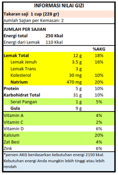 Rogu membeli 3 bungkus makanan yang sama dengan merek X yang masing-masingnya memiliki label informasi gizi sebagai berikut: