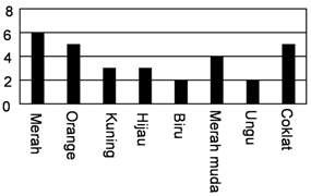 Roni diperbolehkan ibunya untuk mengambil satu permen dari sebuah kantong. Dia tidak dapat melihat warna permen tersebut. Banyaknya permen dengan masing-masing warna dalam kantong tersebut ditunjukkan dalam grafik berikut.
