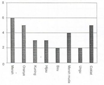 Roni diperbolehkan ibunya untuk mengambil satu permen dari sebuah kantong. Dia tidak dapat melihat warna permen tersebut. Banyaknya permen dengan masing-masing warna dalam kantong tersebut ditunjukkan dalam grafik berikut.