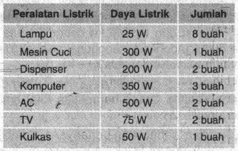 Rumah Pak Dadang memiliki peralatan listrik seperti ditunjukkan dalam tabel berikut.