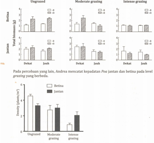 Tanaman pada lokasi dengan grazing sedang, baik jantan maupun betina, secara umum akan menghasilkan biomassa lebih besar saat tumbuh di dekat Stipa. Hal ini menunjukkan efek positif dari Stipa untuk kedua jenis kelamin.