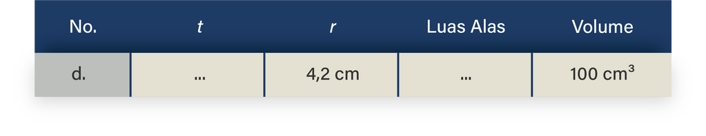 Salin dan lengkapilah tabel ukuran-ukuran kerucut berikut ini