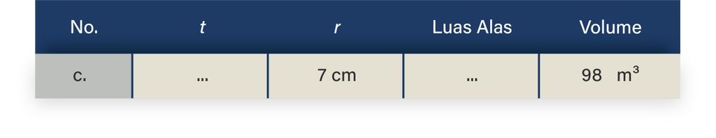 Salin dan lengkapilah tabel ukuran-ukuran kerucut berikut ini