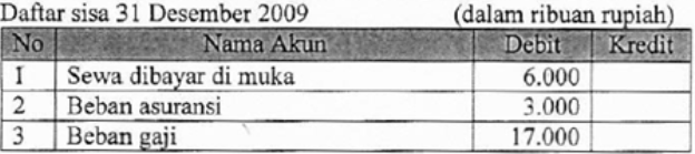 3. Gaji karyawan untuk bulan Desember 2009 yang belum dibayar Rp1.500.000,00
