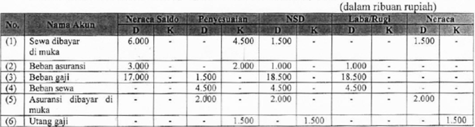 Berdasarkan daftar sisa dan data penyesuaian dibuat kertas kerja berikut ini: