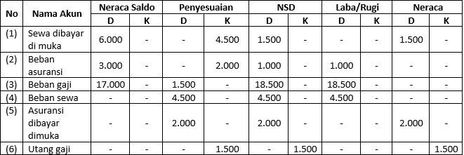 Berdasarkan daftar sisa dan data penyesuaian dibuat kertas kerja berikut ini:
