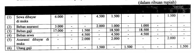 Berdasarkan daftar sisa dan data penyesuaian dibuat kertas kerja berikut ini: