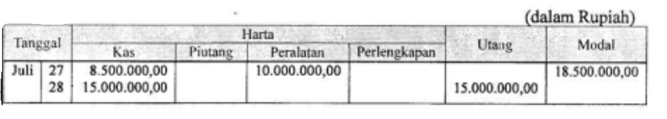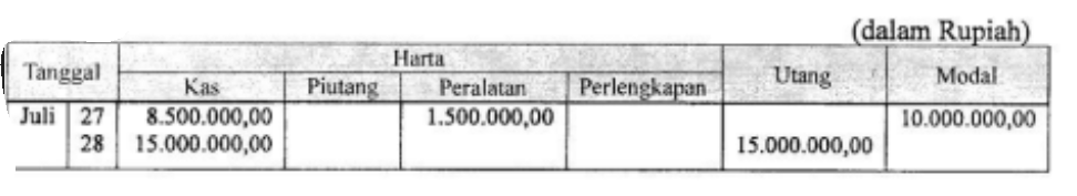 Tanggal 28 Juli 2012 : Meminjam uang ke Bank untuk menambah modal sebesar Rp15.000.000,00