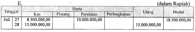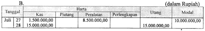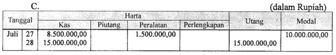 Tanggal 28 Juli 2012 : Meminjam uang ke Bank untuk menambah modal sebesar Rp15.000.000,00