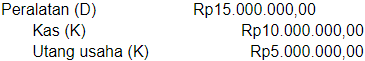 Salon Susi membeli meja rias, kursi, dan lemari senilai Rp15.000.000,00 baru dibayar Rp10.000.000,00 sisanya akan dibayar secara mencicil tiap bulan. Maka jurnal yang dibuat adalah ....
