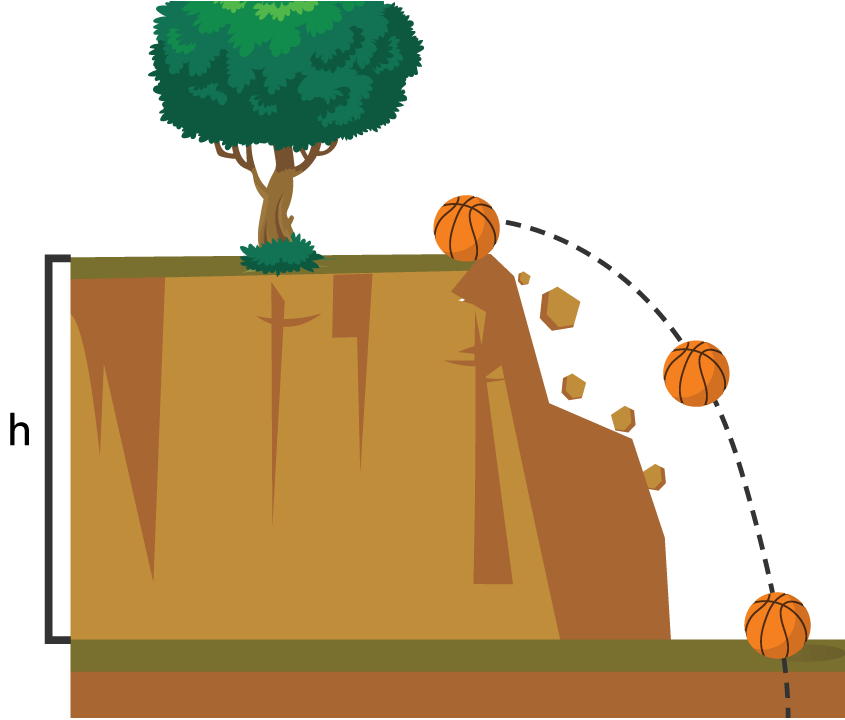 Sandi menendang sebuah bola bermassa m dengan kecepatan awal v dari puncak sebuah tebing yang memiliki ketinggian h. Jika percepatan gravitasi Bumi g, maka komponen berikut yang tidak mempengaruhi jarak horizontal yang ditempuh bola adalah...