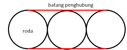 Satu perangkat roda kereta didesain terdiri dari dari tiga roda dan dua batang penghubung seperti gambar berikut.