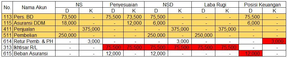 Penyelesaian kertas kerja yang benar adalah ....