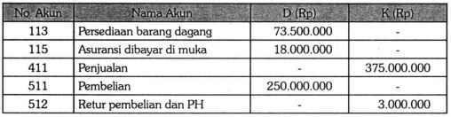Sebagian akun neraca saldo PD "Kencana Jaya" per 31 Desember 2014 sebagai berikut.
